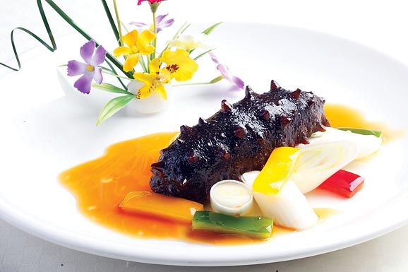 5、由于如意海參要經(jīng)過包蒸改刀裝盤澆汁等工序,所以要輕拿輕放,以防把如意海參弄撒,影響成菜的美觀。